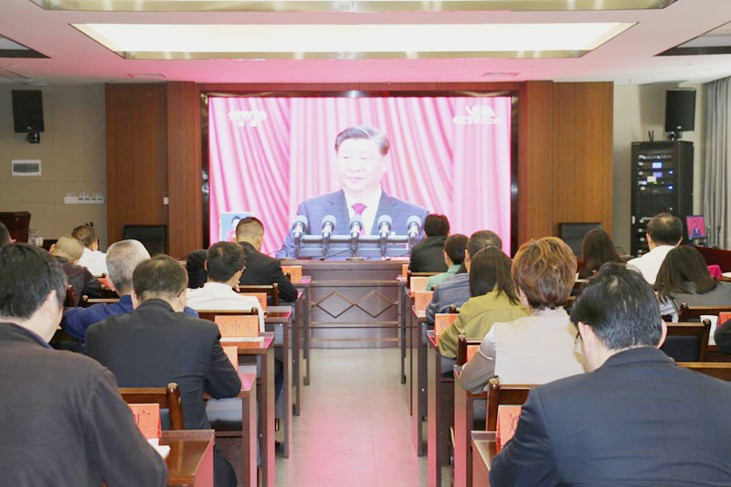 圖為集團黨委組織黨員干部集中收看黨的二十大開幕會盛況