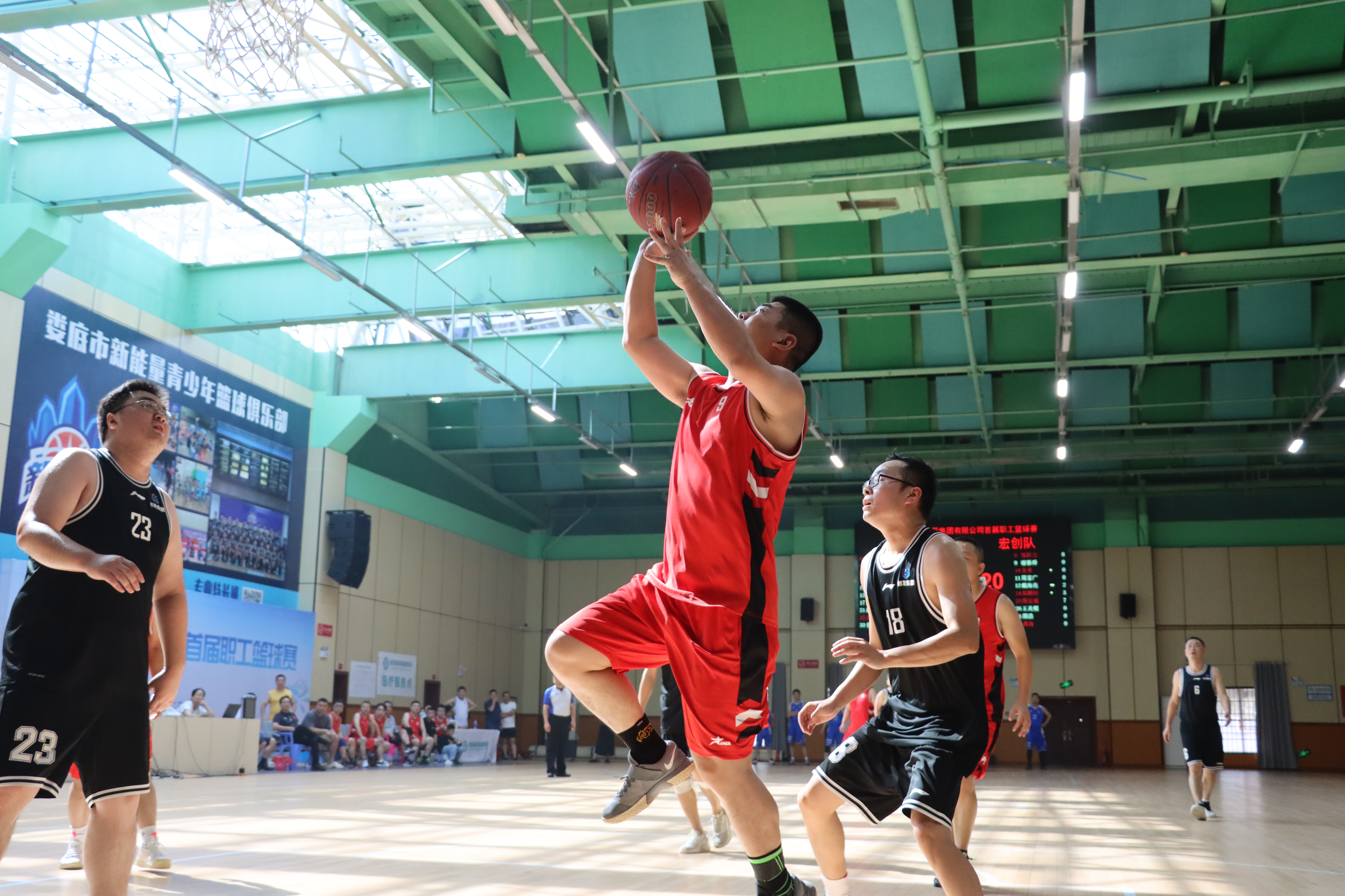 圖為公司首屆職工籃球運動會比賽現(xiàn)場