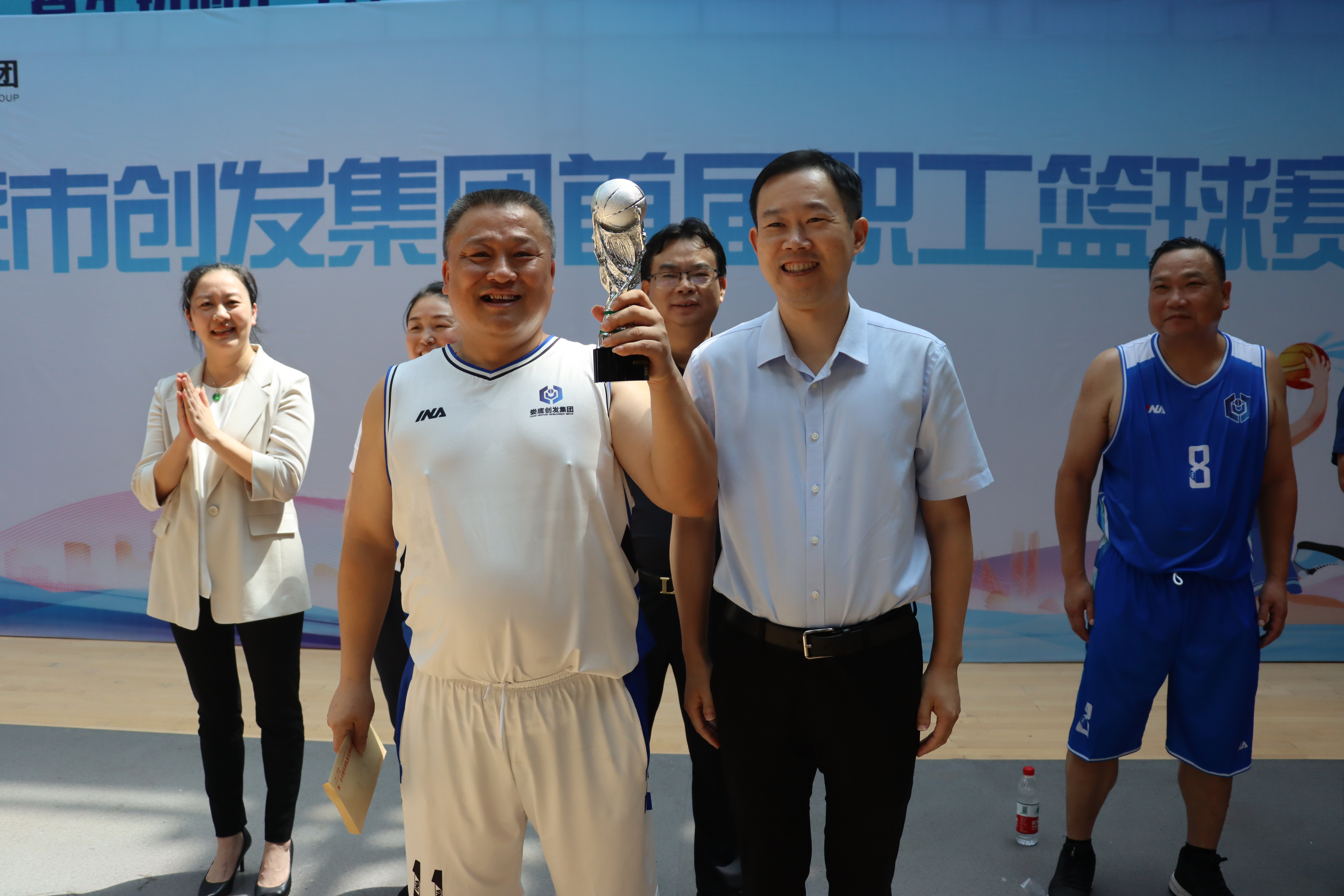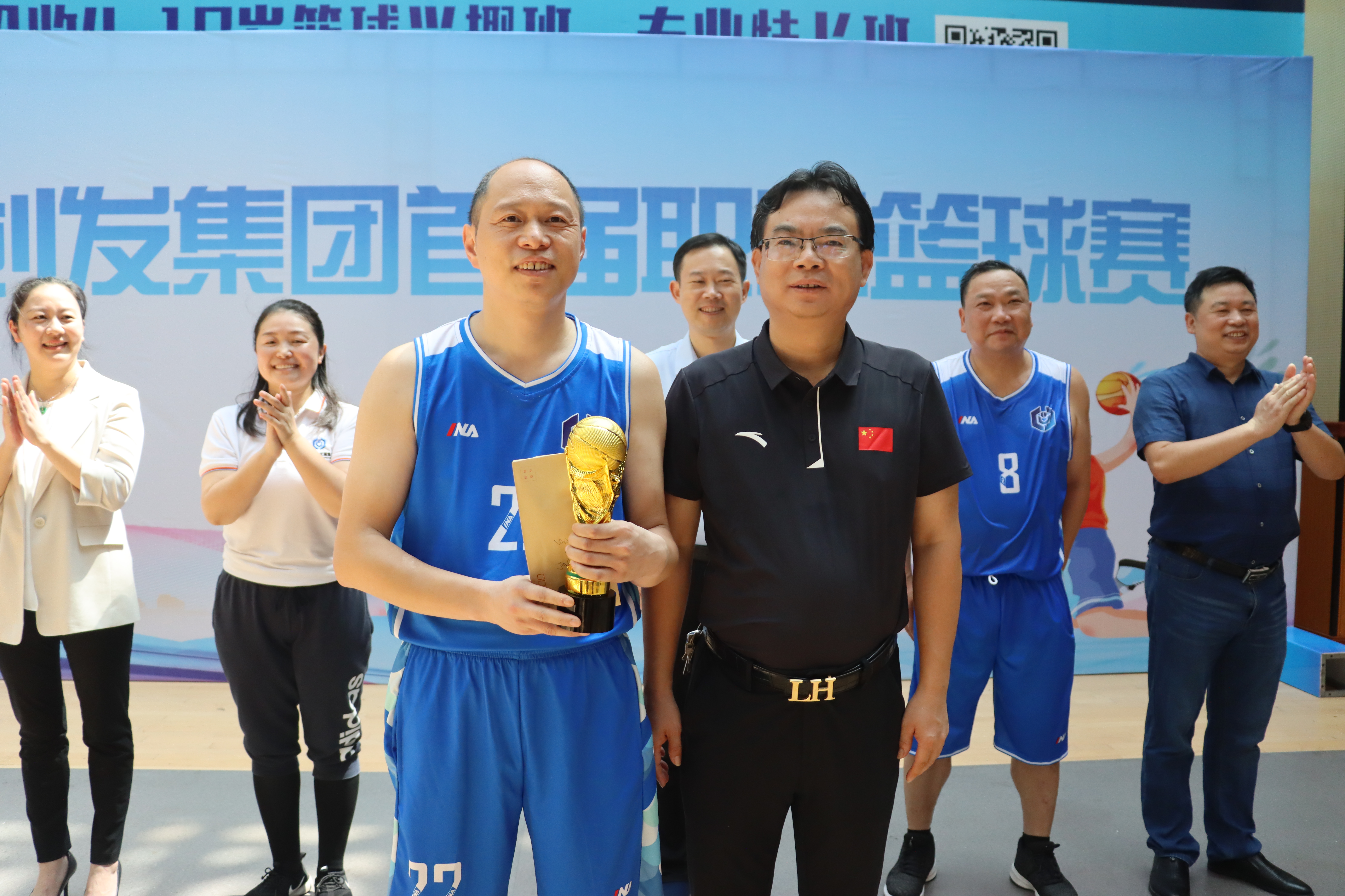 近日,公司首屆職工籃球運動會圓滿落下帷幕。公司黨委書記、董事長梁養(yǎng)賢,黨委副書記、總經(jīng)理謝欣,在家的集團(tuán)黨委委員、高管,以及全體參賽球員參加了公司首屆職工籃球運動會閉幕式。經(jīng)過激烈的角逐,集團(tuán)本部隊、交建投公司隊、源創(chuàng)公司隊?wèi){借精彩的表現(xiàn)脫穎而出,分別獲得本次比賽的前三名。