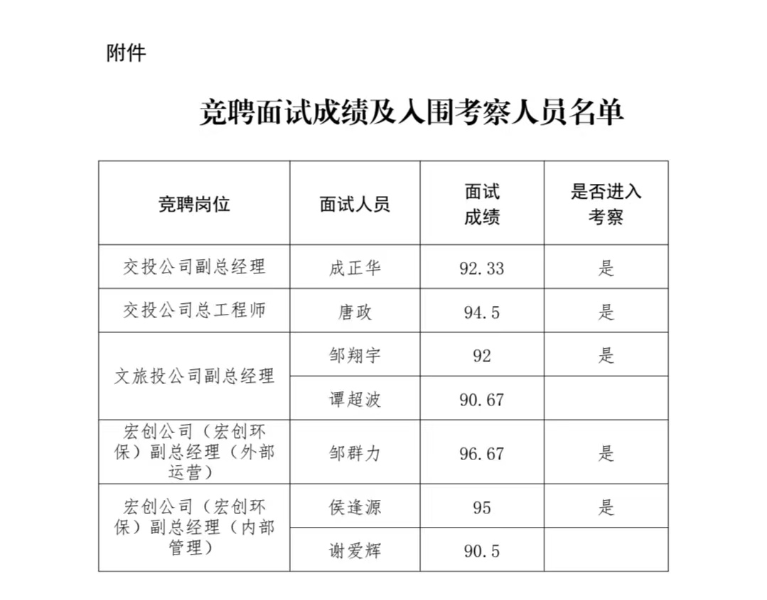 附件:競(jìng)聘面試成績(jī)及入圍考察人員名單