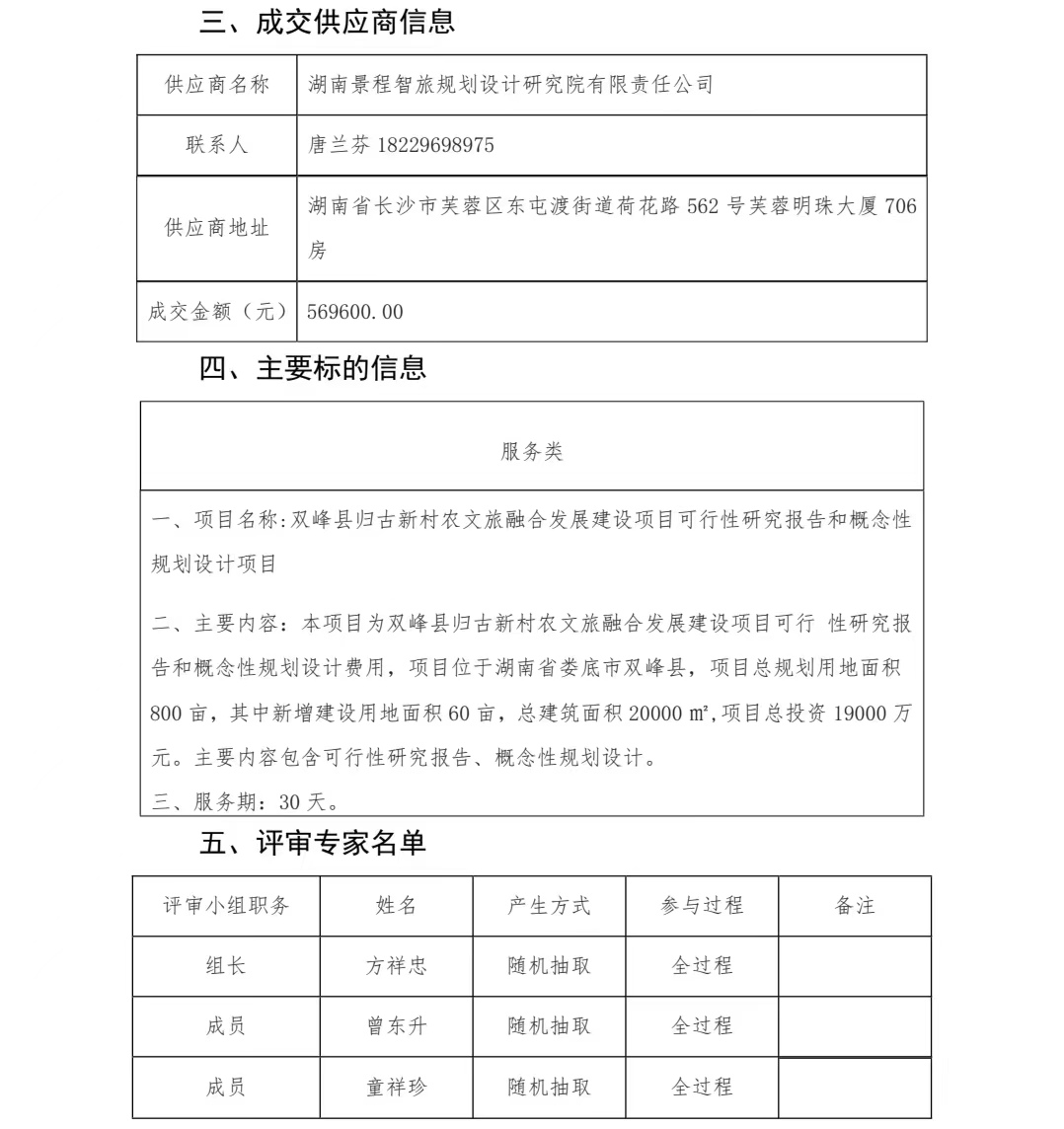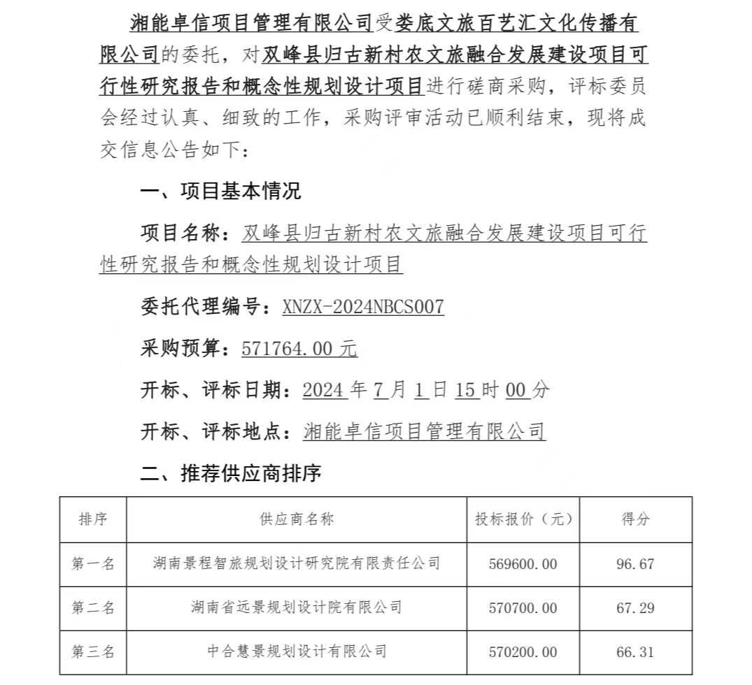 雙峰縣歸古新村農(nóng)文旅融合發(fā)展建設(shè)項(xiàng)目可行性研究報(bào)告和概念性規(guī)劃設(shè)計(jì)項(xiàng)目成交結(jié)果公告