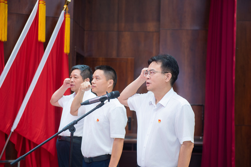 大會在莊嚴(yán)的國歌聲中拉開帷幕,集團(tuán)黨委書記、董事長梁養(yǎng)賢帶領(lǐng)全體黨員重溫入黨誓詞,一字一句,鏗鏘有力,堅定豪邁,體現(xiàn)了全體黨員對中國共產(chǎn)黨的熱愛與忠誠。